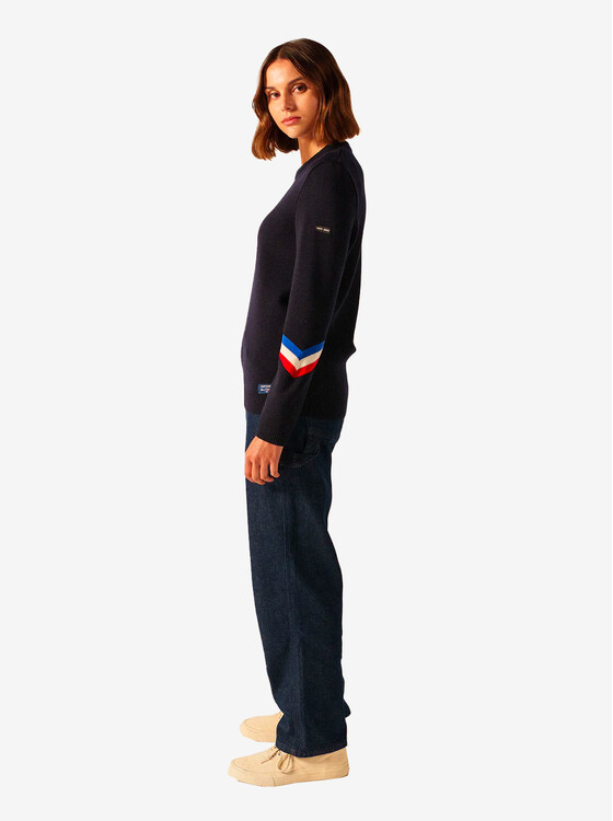 The MONDIOVISION ALES sailor sweater, knitted in a 1x1 rib, offers pleasant warmth while remaining lightweight and comfortable.