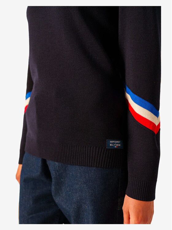 It stands out with tricolor bands on the sleeves, proudly celebrating the colors of the French flag.