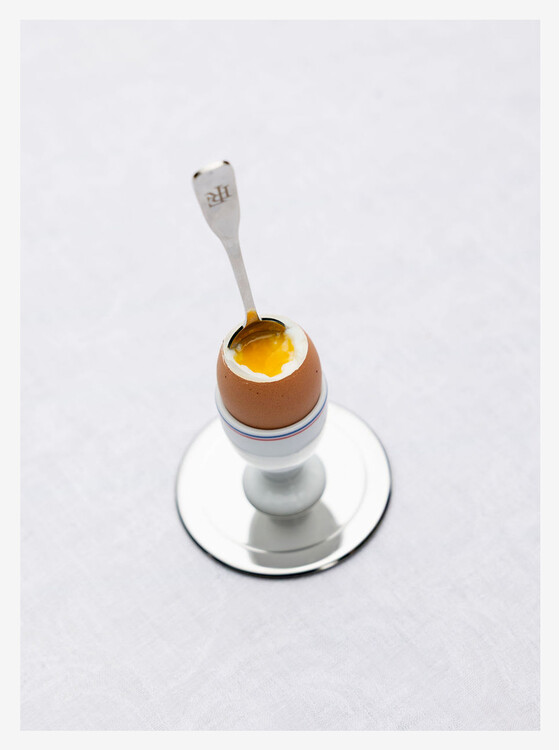 Un coquetier en porcelaine de Limoges au liseré tricolore, accompagné de sa cuillère marquée "RF", pour déguster un œuf à la coque, comme si vous étiez à l'Élysée !