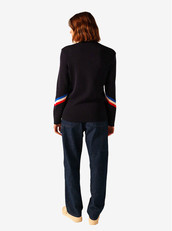 Il se différencie par ses bandes tricolores sur les manches qui célèbrent avec fierté les couleurs du drapeau français.